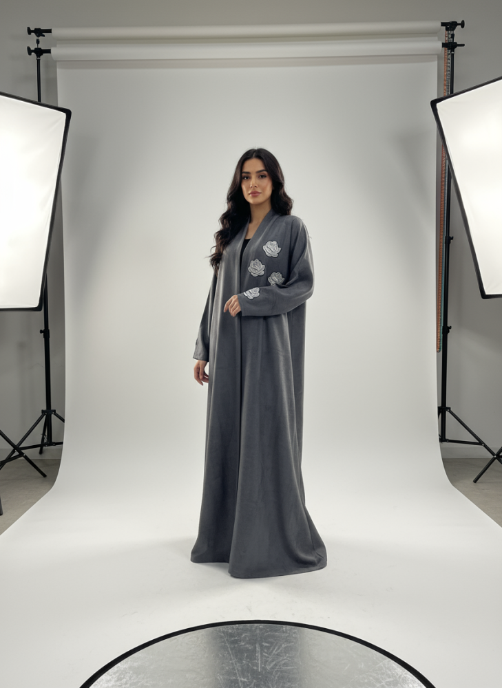 عباية شامواه فاخرة بتفاصيل أنيقة، تتميز بملمسها الناعم ولمعتها الراقية، مزينة بلمسات من الورود الناعمة التي تضيف لمسة أنثوية جذابة. تصميمها يجمع بين الفخامة والبساطة، مثالية للإطلالات المسائية والمناسبات الخاصة، وتمنحك حضور راقٍ وملفت بدون مبالغة